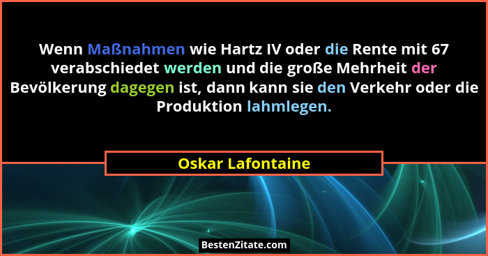 Wenn Maßnahmen wie Hartz IV oder die Rente mit 67 verabschiedet werden und die große Mehrheit der Bevölkerung dagegen ist, dann kann sie den Verkehr oder die Produktion lahmlegen.