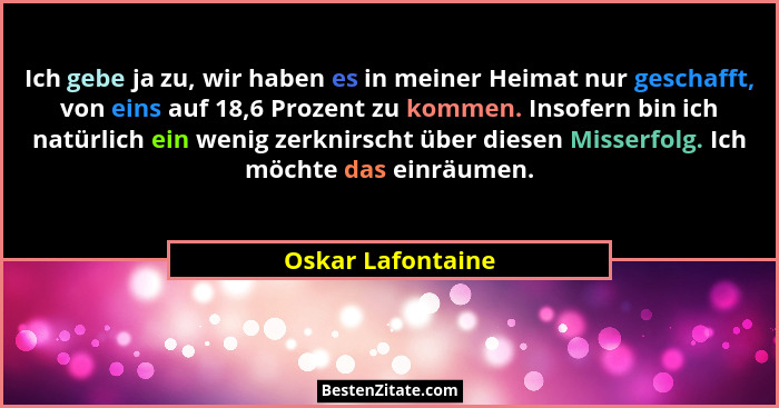 Ich gebe ja zu, wir haben es in meiner Heimat nur geschafft, von eins auf 18,6 Prozent zu kommen. Insofern bin ich natürlich ein wenig zerknirscht über diesen Misserfolg. Ich möchte das einräumen.