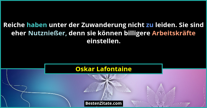 Reiche haben unter der Zuwanderung nicht zu leiden. Sie sind eher Nutznießer, denn sie können billigere Arbeitskräfte einstellen.