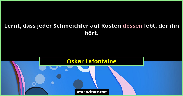 Lernt, dass jeder Schmeichler auf Kosten dessen lebt, der ihn hört.