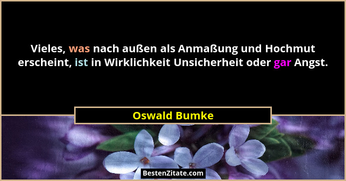 Vieles, was nach außen als Anmaßung und Hochmut erscheint, ist in Wirklichkeit Unsicherheit oder gar Angst.