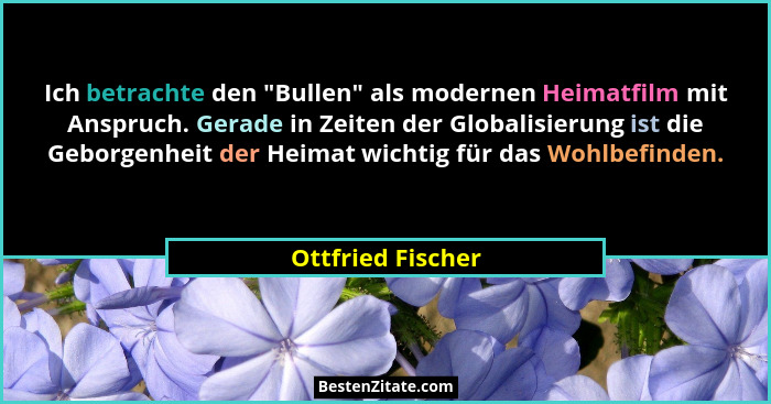 Ich betrachte den "Bullen" als modernen Heimatfilm mit Anspruch. Gerade in Zeiten der Globalisierung ist die Geborgenheit der Heimat wichtig für das Wohlbefinden.