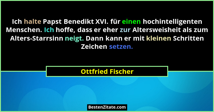 Ich halte Papst Benedikt XVI. für einen hochintelligenten Menschen. Ich hoffe, dass er eher zur Altersweisheit als zum Alters-Starrsinn neigt. Dann kann er mit kleinen Schritten Zeichen setzen.