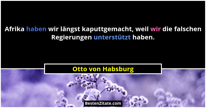 Afrika haben wir längst kaputtgemacht, weil wir die falschen Regierungen unterstützt haben.
