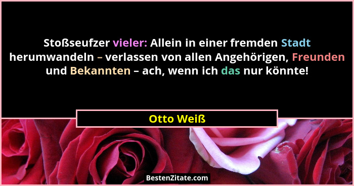 Stoßseufzer vieler: Allein in einer fremden Stadt herumwandeln – verlassen von allen Angehörigen, Freunden und Bekannten – ach, wenn ich das nur könnte!