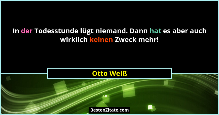 In der Todesstunde lügt niemand. Dann hat es aber auch wirklich keinen Zweck mehr!