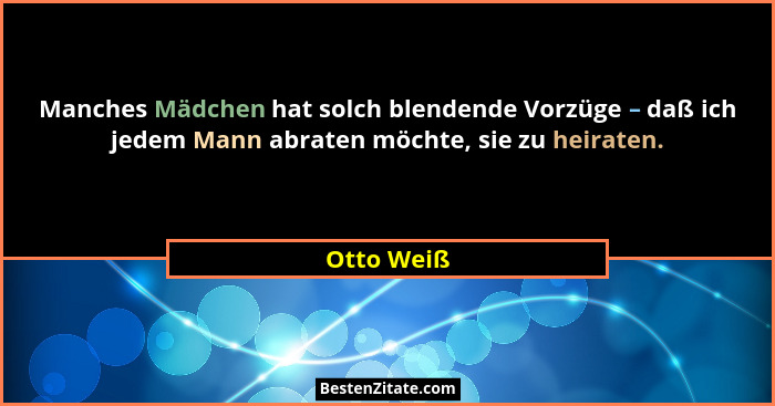 Manches Mädchen hat solch blendende Vorzüge – daß ich jedem Mann abraten möchte, sie zu heiraten.