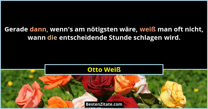 Gerade dann, wenn's am nötigsten wäre, weiß man oft nicht, wann die entscheidende Stunde schlagen wird.