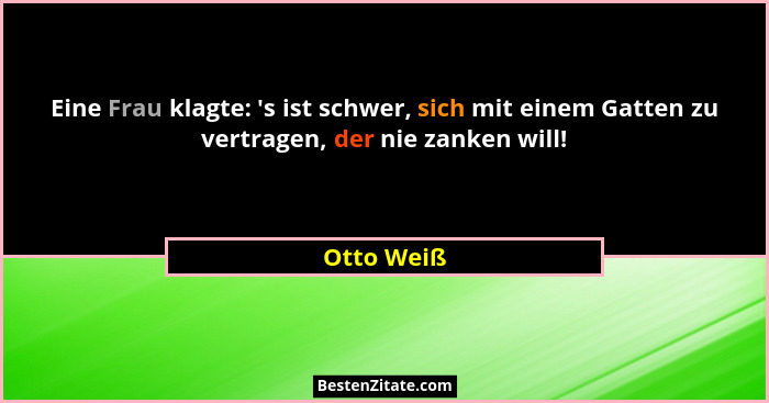 Eine Frau klagte: 's ist schwer, sich mit einem Gatten zu vertragen, der nie zanken will!