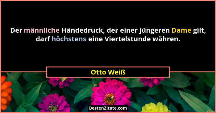 Der männliche Händedruck, der einer jüngeren Dame gilt, darf höchstens eine Viertelstunde währen.