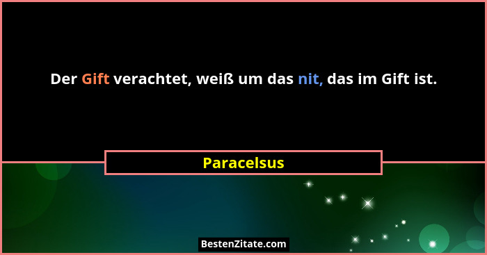 Der Gift verachtet, weiß um das nit, das im Gift ist.