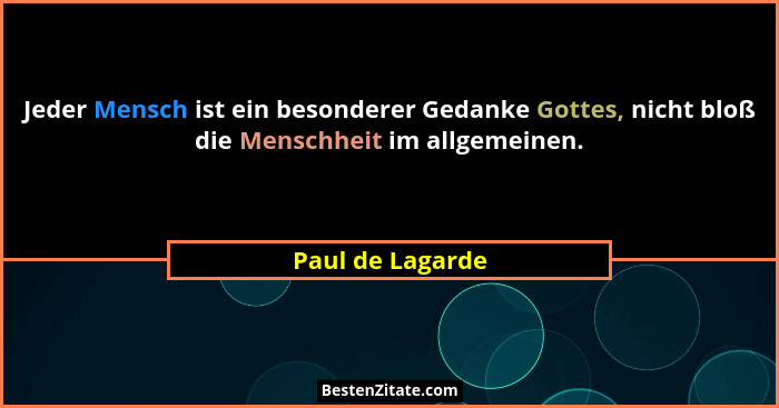 Jeder Mensch ist ein besonderer Gedanke Gottes, nicht bloß die Menschheit im allgemeinen.