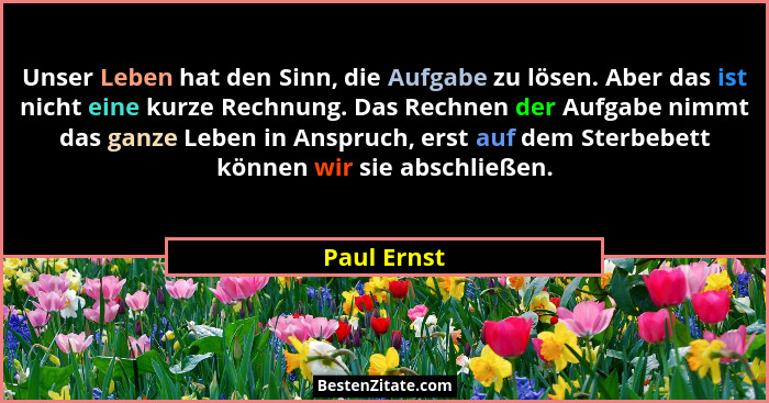 Unser Leben hat den Sinn, die Aufgabe zu lösen. Aber das ist nicht eine kurze Rechnung. Das Rechnen der Aufgabe nimmt das ganze Leben in Anspruch, erst auf dem Sterbebett können wir sie abschließen.