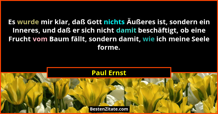 Es wurde mir klar, daß Gott nichts Äußeres ist, sondern ein Inneres, und daß er sich nicht damit beschäftigt, ob eine Frucht vom Baum fällt, sondern damit, wie ich meine Seele forme.