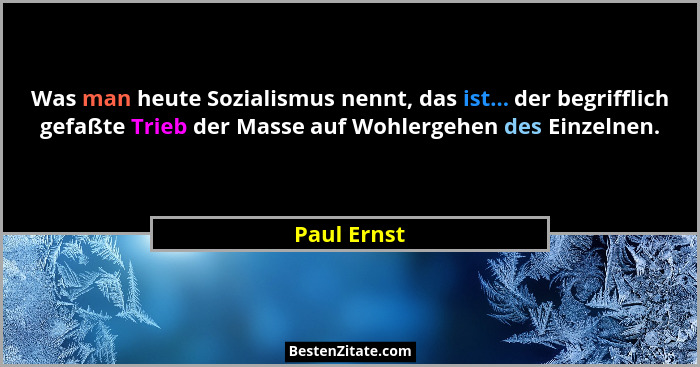 Was man heute Sozialismus nennt, das ist... der begrifflich gefaßte Trieb der Masse auf Wohlergehen des Einzelnen.