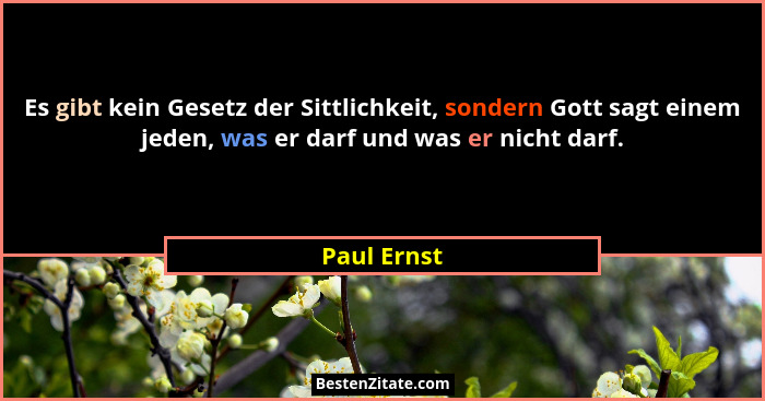 Es gibt kein Gesetz der Sittlichkeit, sondern Gott sagt einem jeden, was er darf und was er nicht darf.