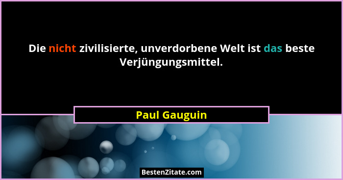 Die nicht zivilisierte, unverdorbene Welt ist das beste Verjüngungsmittel.