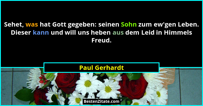 Sehet, was hat Gott gegeben: seinen Sohn zum ew'gen Leben. Dieser kann und will uns heben aus dem Leid in Himmels Freud.
