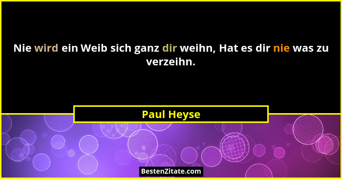 Nie wird ein Weib sich ganz dir weihn, Hat es dir nie was zu verzeihn.