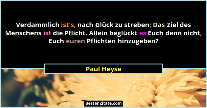 Verdammlich ist's, nach Glück zu streben; Das Ziel des Menschens ist die Pflicht. Allein beglückt es Euch denn nicht, Euch euren Pflichten hinzugeben?