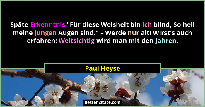 Späte Erkenntnis "Für diese Weisheit bin ich blind, So hell meine jungen Augen sind." – Werde nur alt! Wirst's auch erfahren: Weitsichtig wird man mit den Jahren.