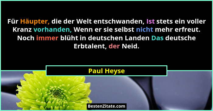 Für Häupter, die der Welt entschwanden, Ist stets ein voller Kranz vorhanden, Wenn er sie selbst nicht mehr erfreut. Noch immer blüht in deutschen Landen Das deutsche Erbtalent, der Neid.
