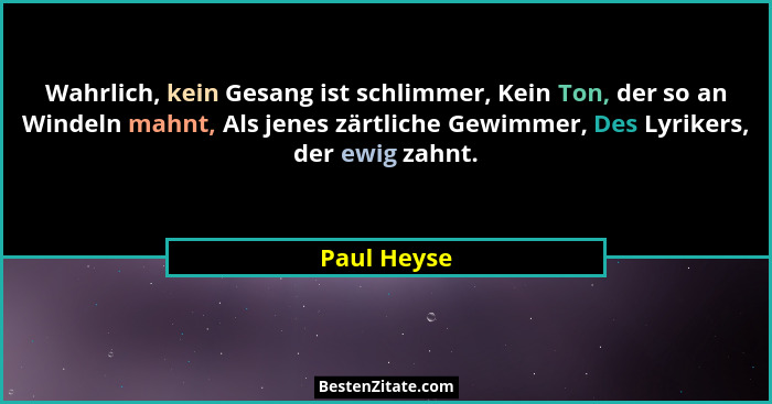 Wahrlich, kein Gesang ist schlimmer, Kein Ton, der so an Windeln mahnt, Als jenes zärtliche Gewimmer, Des Lyrikers, der ewig zahnt.