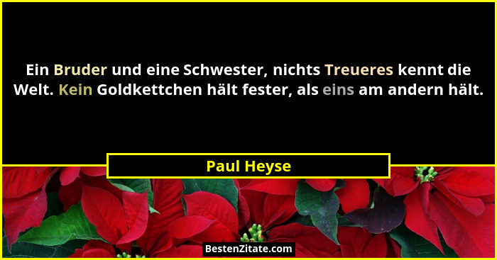 Ein Bruder und eine Schwester, nichts Treueres kennt die Welt. Kein Goldkettchen hält fester, als eins am andern hält.