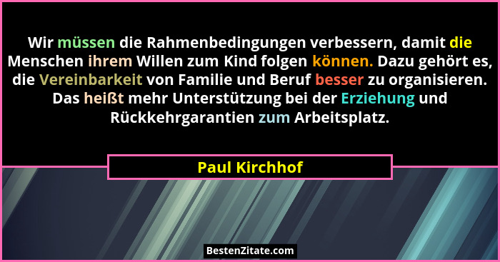 Wir müssen die Rahmenbedingungen verbessern, damit die Menschen ihrem Willen zum Kind folgen können. Dazu gehört es, die Vereinbarkeit von Familie und Beruf besser zu organisieren. Das heißt mehr Unterstützung bei der Erziehung und Rückkehrgarantien zum Arbeitsplatz.