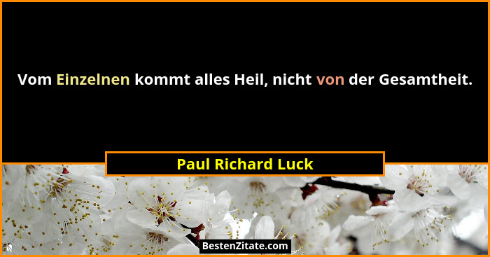 Vom Einzelnen kommt alles Heil, nicht von der Gesamtheit.