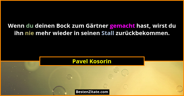 Wenn du deinen Bock zum Gärtner gemacht hast, wirst du ihn nie mehr wieder in seinen Stall zurückbekommen.
