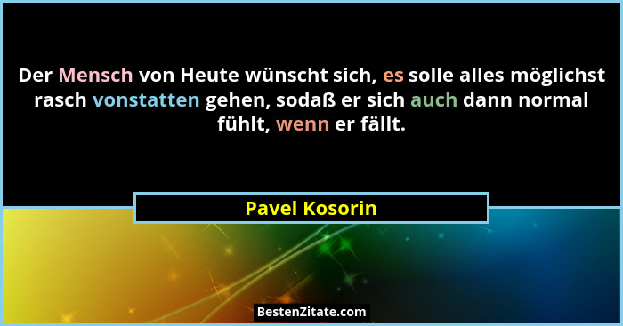 Der Mensch von Heute wünscht sich, es solle alles möglichst rasch vonstatten gehen, sodaß er sich auch dann normal fühlt, wenn er fällt.