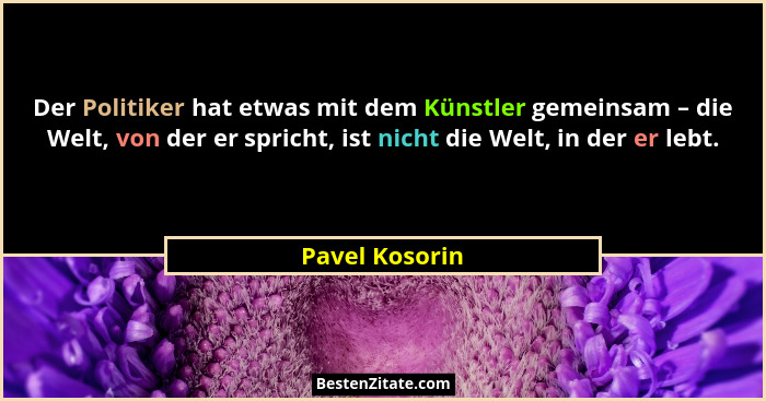 Der Politiker hat etwas mit dem Künstler gemeinsam – die Welt, von der er spricht, ist nicht die Welt, in der er lebt.