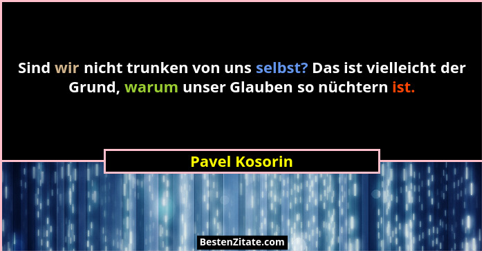 Sind wir nicht trunken von uns selbst? Das ist vielleicht der Grund, warum unser Glauben so nüchtern ist.