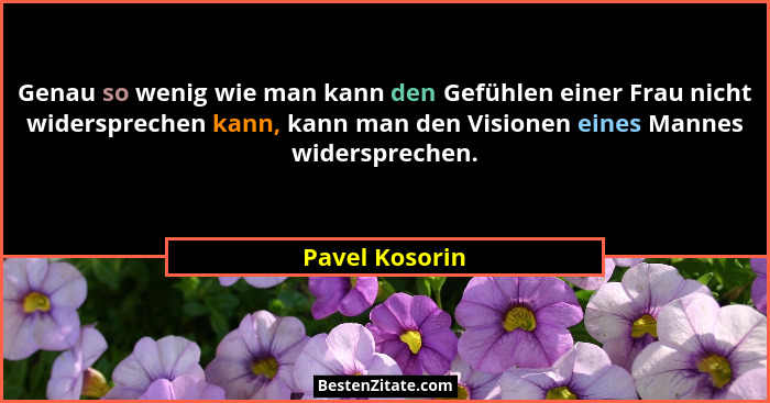 Genau so wenig wie man kann den Gefühlen einer Frau nicht widersprechen kann, kann man den Visionen eines Mannes widersprechen.