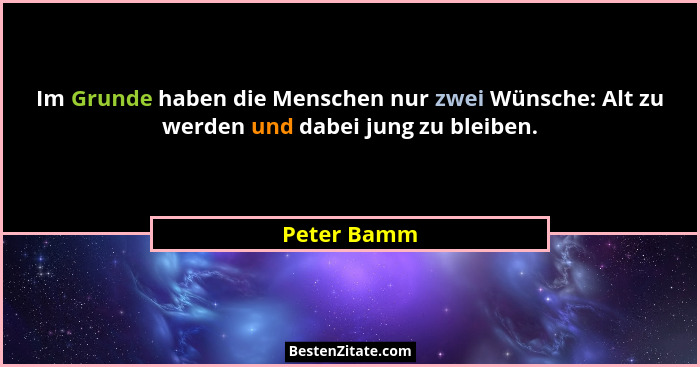 Im Grunde haben die Menschen nur zwei Wünsche: Alt zu werden und dabei jung zu bleiben.