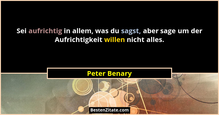 Sei aufrichtig in allem, was du sagst, aber sage um der Aufrichtigkeit willen nicht alles.