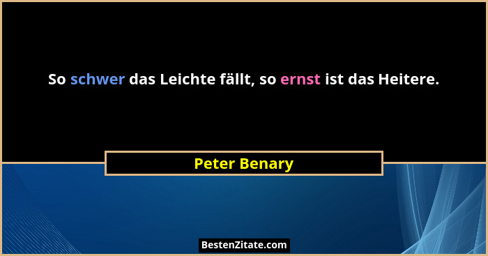 So schwer das Leichte fällt, so ernst ist das Heitere.