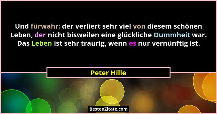 Und fürwahr: der verliert sehr viel von diesem schönen Leben, der nicht bisweilen eine glückliche Dummheit war. Das Leben ist sehr traurig, wenn es nur vernünftig ist.