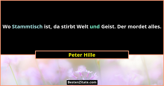 Wo Stammtisch ist, da stirbt Welt und Geist. Der mordet alles.