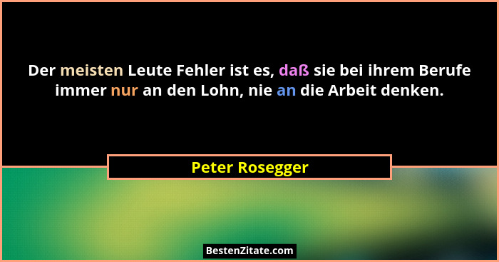 Der meisten Leute Fehler ist es, daß sie bei ihrem Berufe immer nur an den Lohn, nie an die Arbeit denken.