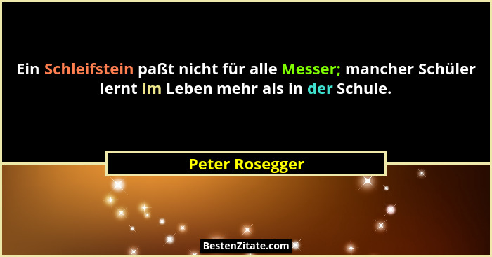 Ein Schleifstein paßt nicht für alle Messer; mancher Schüler lernt im Leben mehr als in der Schule.