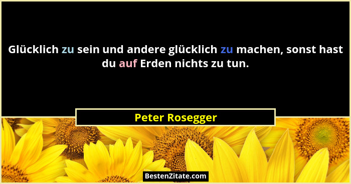 Glücklich zu sein und andere glücklich zu machen, sonst hast du auf Erden nichts zu tun.