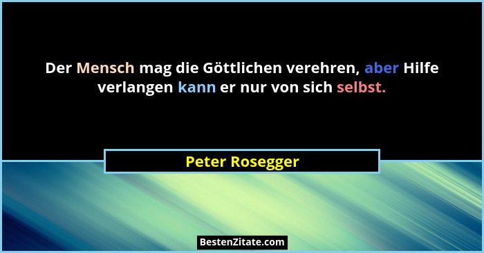 Der Mensch mag die Göttlichen verehren, aber Hilfe verlangen kann er nur von sich selbst.