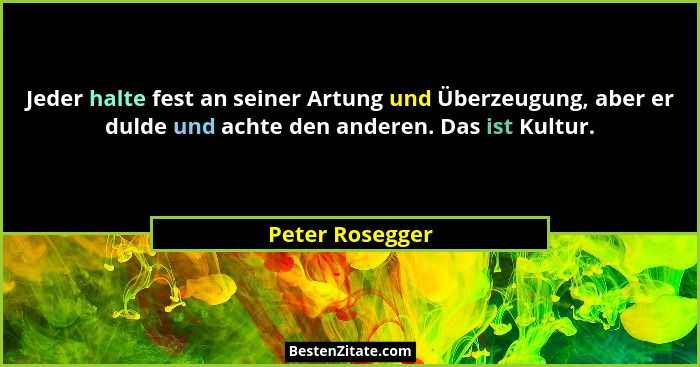 Jeder halte fest an seiner Artung und Überzeugung, aber er dulde und achte den anderen. Das ist Kultur.