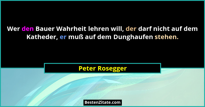 Wer den Bauer Wahrheit lehren will, der darf nicht auf dem Katheder, er muß auf dem Dunghaufen stehen.