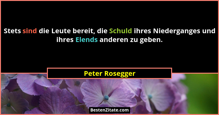 Stets sind die Leute bereit, die Schuld ihres Niederganges und ihres Elends anderen zu geben.