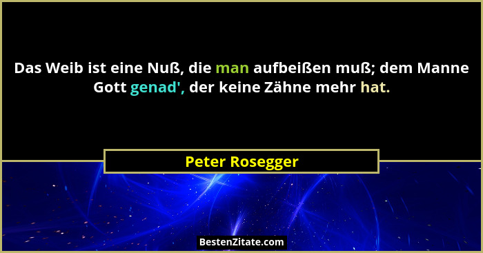 Das Weib ist eine Nuß, die man aufbeißen muß; dem Manne Gott genad', der keine Zähne mehr hat.