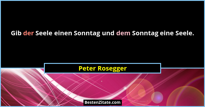 Gib der Seele einen Sonntag und dem Sonntag eine Seele.