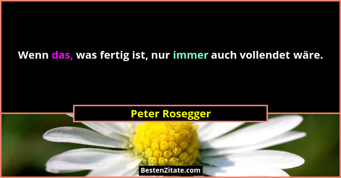 Wenn das, was fertig ist, nur immer auch vollendet wäre.